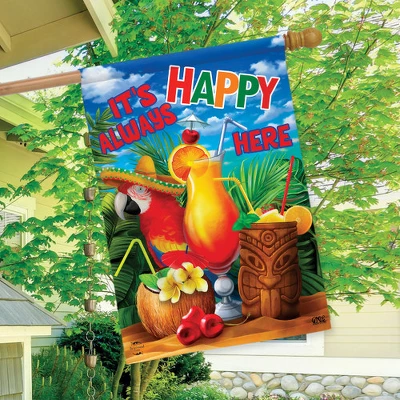 Always Happy Here Summer House Flag Tropical Drinks Cocktails Macaw 28″ X 40″ Briarwood Lane