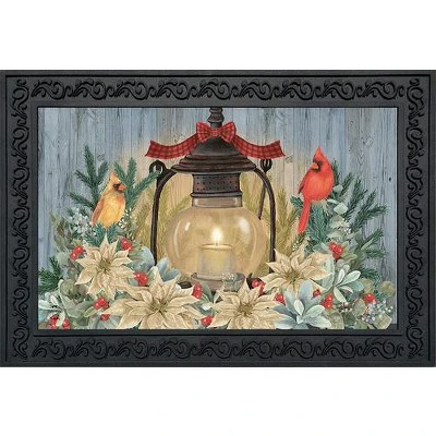 Briarwood Lane Warm Winter Candle Doormat White Poinsettias Indoor Outdoor 30″ X 18″