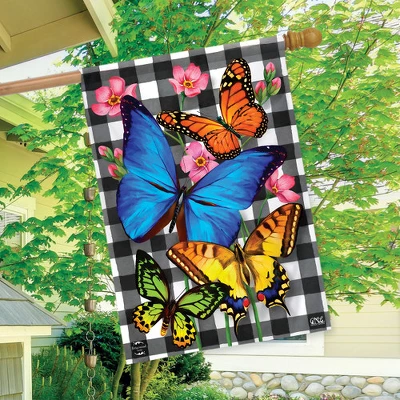 Checkered Butterflies Spring House Flag Floral 28″ X 40″ Briarwood Lane