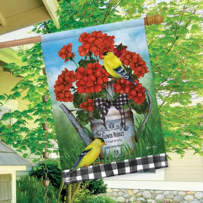 Geranium Watering Can Summer House Flag Goldfinches Birds 28″ X 40″ Briarwood Lane