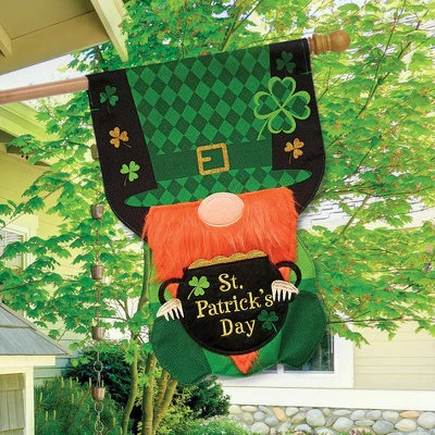 Lucky Gnome Burlap Sculpted House Flag St. Patrick’s Day 28″ X 40″ Briarwood Lane