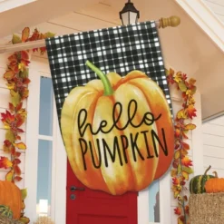 Hello Pumpkin Burlap Fall House Flag 40″ X 28″ Briarwood Lane