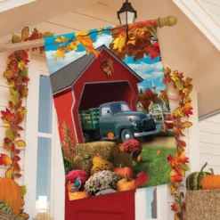 Harvest Bridge Autumn House Flag Pickup Truck Fall 28″ X 40″ Briarwood Lane