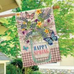 Happy Spring Mason Jar Floral House Flag Primitive 28″ X 40″ Briarwood Lane