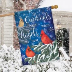 Briarwood Lane Cardinals Appear Winter House Flag Snowflakes 28″