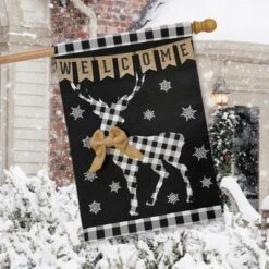 Briarwood Lane Checkered Deer Burlap Winter House Flag Welcome 28