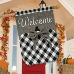 Briarwood Lane Black And White Pumpkin Burlap Fall House Flag Autumn Welcome Checkered 28″x40″