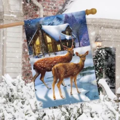 Winter Birdhouse Burlap House Flag 28″ X 40″ Welcome Cardinal Briarwood Lane