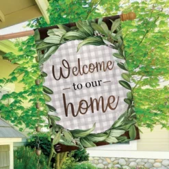 Welcome To Our Home Wreath Double-Sided House Flag Everyday Greenery 28″ X 40″ Briarwood Lane