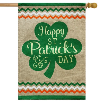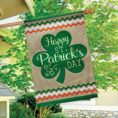 St. Patrick’s Day Clover Burlap House Flag Shamrock 28″ X 40″ Briarwood Lane