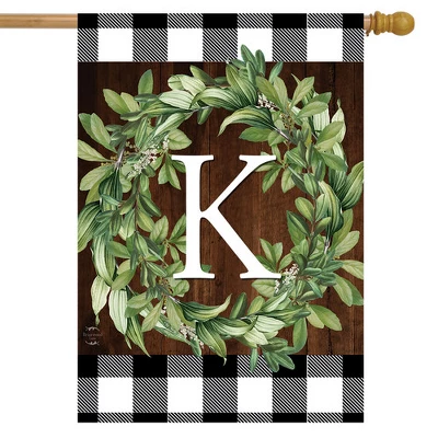 Wreath Monogram K Double-Sided House Flag Everyday 28″ X 40″ Briarwood Lane